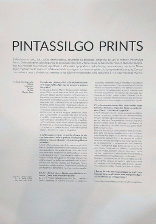 >> GALERÍA DE TRABAJOS >> TP N°1: ESCRITURAS HISTÓRICAS >> TP N°2: SENSIBILIZACIÓN A LA FORMA Y AL COLOR TIPOGRÁFICOS >> TP N°3: SENSIBILIZACIÓN A LA COMPOSICIÓN TIPOGRÁFICA >> TP N°4: APROXIMACIÓN AL SISTEMA TIPOGRÁFICO >> TP N°5: EX LIBRIS CALIGRÁFICO >> TP N°6: ANÁLISIS DE LAS FAMILIAS TIPOGRÁFICAS >> TP N°7: CONSTRUCCIÓN DE CARACTERES >> TP N°8: CONSTRUCCIÓN DE CARACTERES: INFORME FINAL >> TP N°9: TIPOGRAFÍA Y COMUNICACIÓN