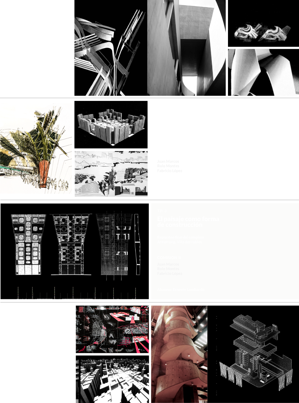 El proyecto propone investigar las posibilidades del espacio en relación a las partes con el todo. Para ello se definen pares conceptuales: llenos y vacíos, curvas y rectas, opacidades y transparencias, figuración y abstracción, luces y sombras, etc. Todas estas en su interacción definen la espacialidad.