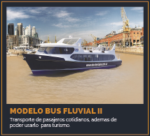 Para revertir este cuadro de situaciÛn que afectaba transversalmente a todo el sistema de transporte nacional, sostenido actualmente en el mantenimiento de la hidrovÌa Canal Mitre al puerto de Rosario con aplicaciÛn principal a la exportaciÛn a granel de granos de la pampa h˙meda y el movimiento de contenedores con insumos y productos terminados de importaciÛn / exportaciÛn. AsÌ como la vinculaciÛn con buques de servicio regular con la vecina Republica Oriental del Uruguay; proponemos un sistema de transporte fluvial dentro y fuera de la cuenca, el cual funcionara tanto para el ciudadano, como para las empresas y el turismo. Una gran oportunidad de desarrollo en la Cuenca por donde discurren los 64 km de extensiÛn del sistema hÌdrico integrado por los rÌos Matanza y Riachuelo