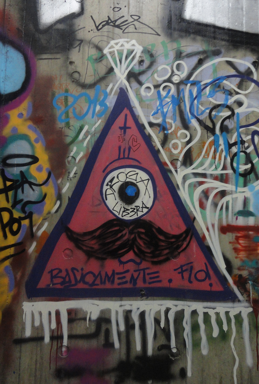 Graffitti ubicado en la escalera entre el subsuelo y el primer piso.— Anónimo