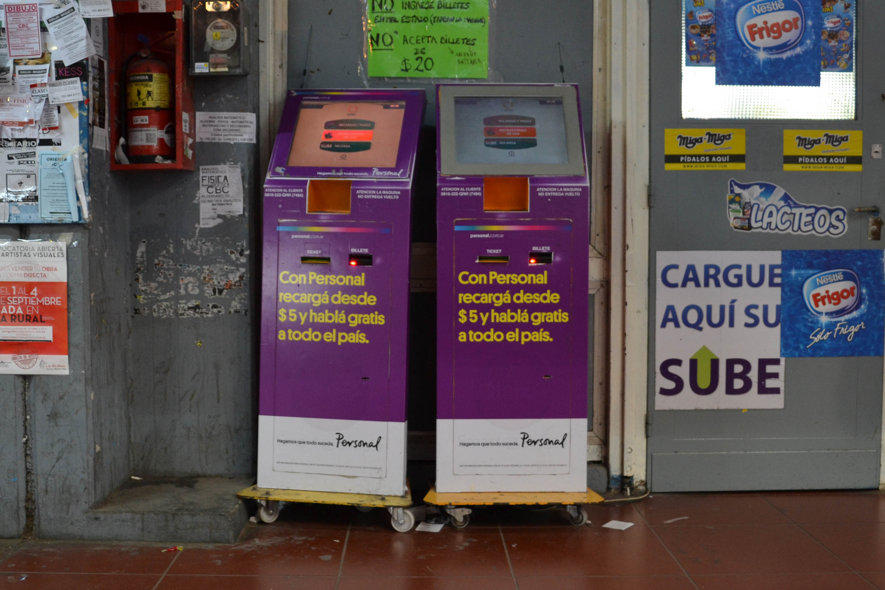 CARGA: Se encuentran en planta baja, al lado del kiosco cerca de la puerta. Funciona con billetes.
