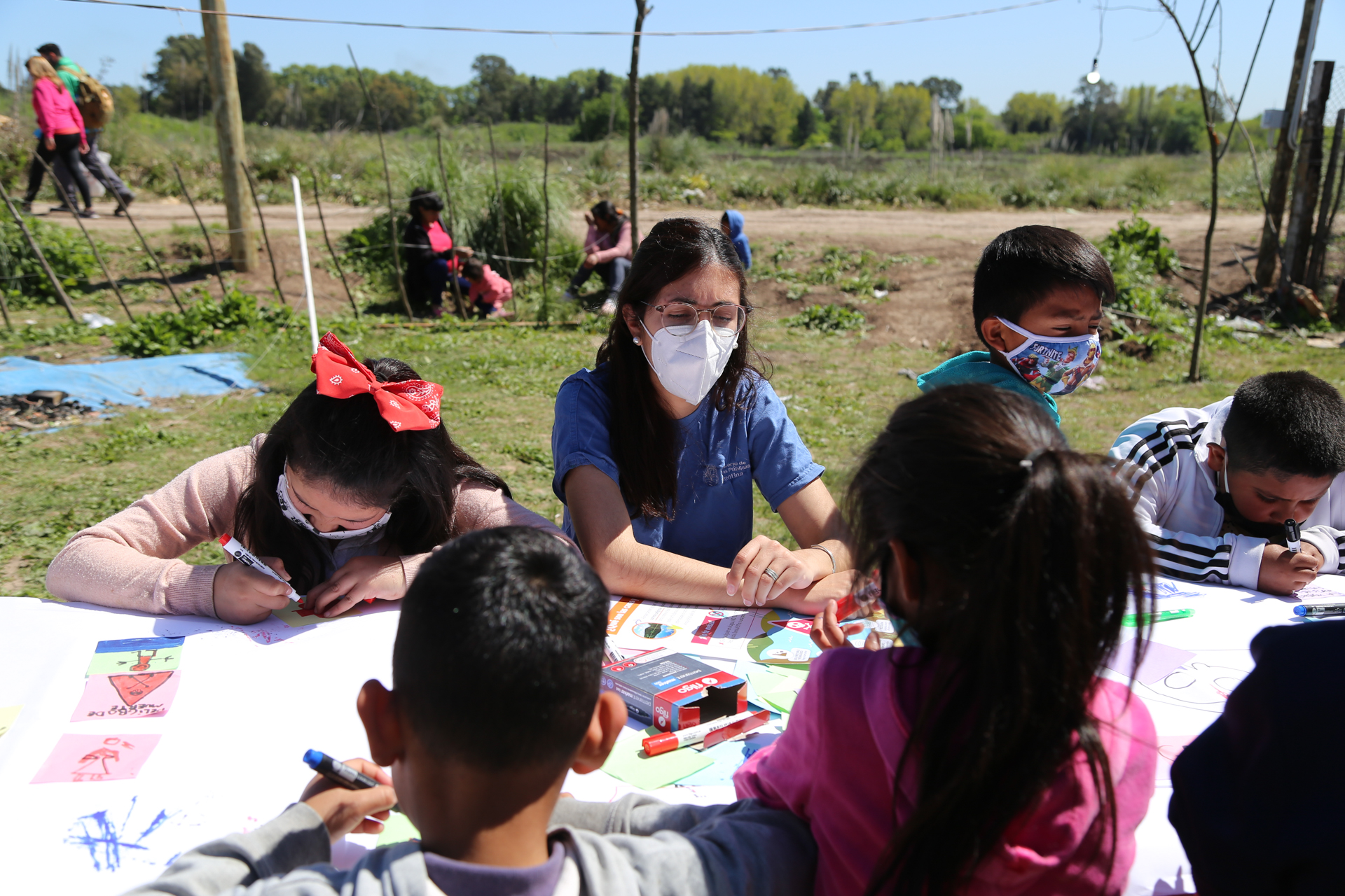 De cara a los meses de verano, realizamos talleres con infancias para difundir los peligros mortales de meterse en estos enormes pozos que parecen lagunas. Abarcan desde infecciones y otras enfermedades, hasta cortes, golpes y ahogamiento.