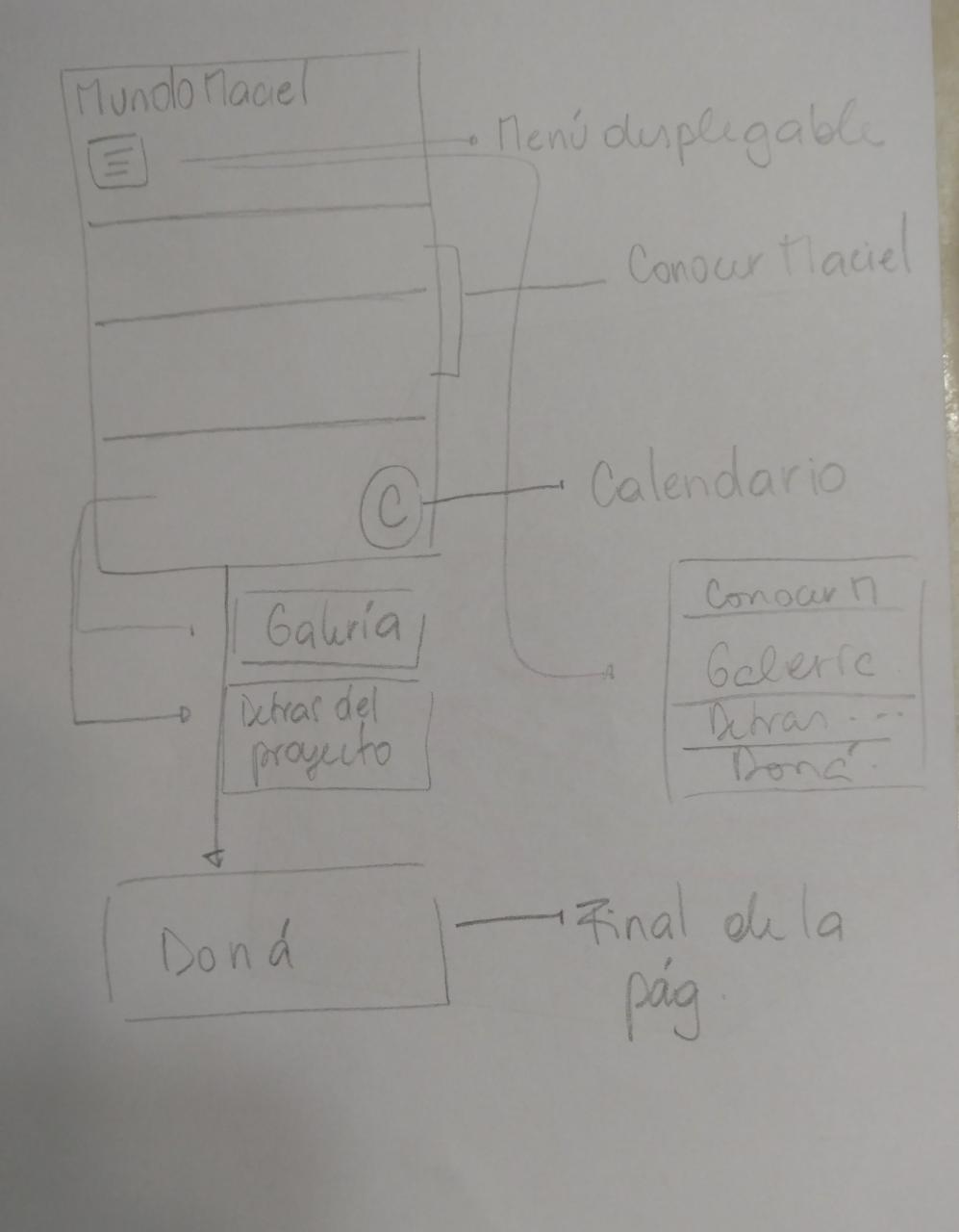 Como plan para la pagina web pense un diseño simple, despojado, de fácil acceso. En una sola pagina con un menú desplegable fijo, que se pueda seguir visualizando al scrollear. Al seleccionar la categoria la pagina se trasladaría automaticamente a la parte de esa unica pagina en la que se encuentra dicha categoria. Al final de la pagina habría un acceso directo, presentado de forma interactiva que invite a los usuarios a hacer su aporte al proyecto. De ser posible me gustaria que haya un pequeño recuadro fijo con un calendario, que este siempre presente sin molestar, que pueda verse aunque se scrolee y que se pueda maximizar al seleccionarlo para poder agendarte en los recorridos.