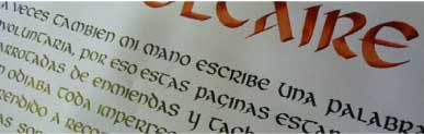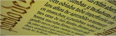 Apropiación del recurso caligráfico permitiendo la comprensión del comportamiento del trazo gradual, la forma subyacente y la construcción del ductus de cada tipo de escritura. Los diferentes bloques de texto permiten la asociación entre el color de los signos y las relaciones espaciales que determinan el color del bloque.