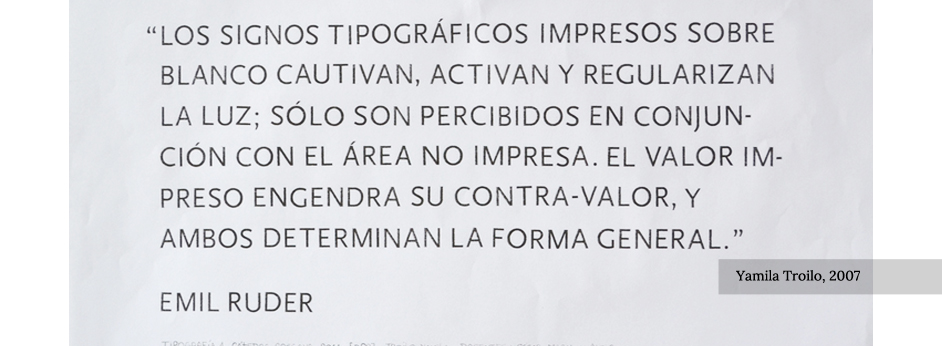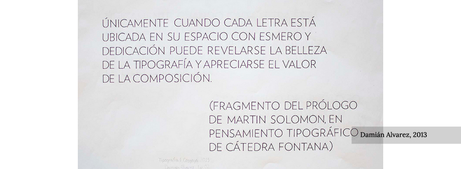 A partir de la composición de un bloque de texto letras mayúsculas recortadas se practica el reconocimiento de los espacios óptimos para lograr la homogeneidad en un bloque de texto relativamente corto, teniendo en cuenta las contraformas propias y compartidas.