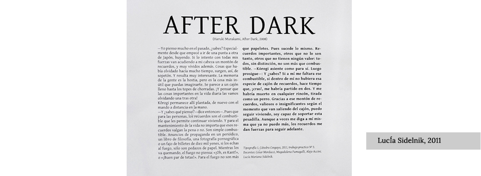 Se deberá componer en un tamaño específico un reportaje realizado a un tipógrafo en particular elegido. A la par se deberá elegir una única familia entre Alegreya, Charis, Lato y Overlock, descargarla desde el sitio de la cátedra e instalarla/activarla para proceder a la elaboración de la lámina.