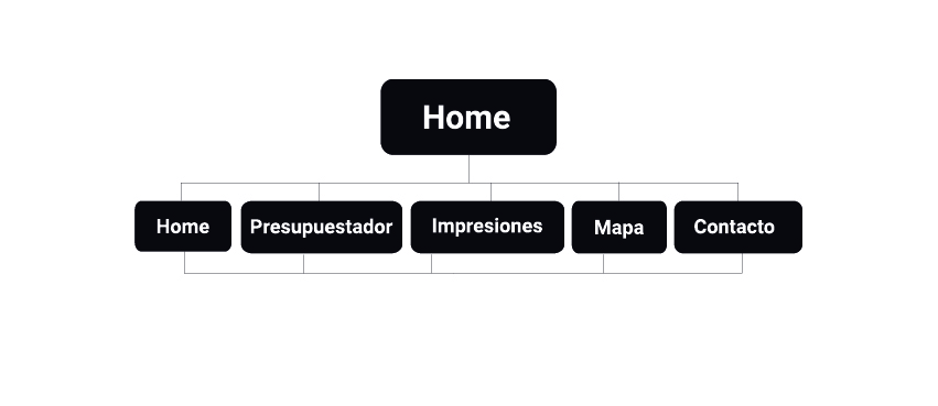 Este mapa de flujo representa la navegación de nuestro sitio, PresupuestosYa!
